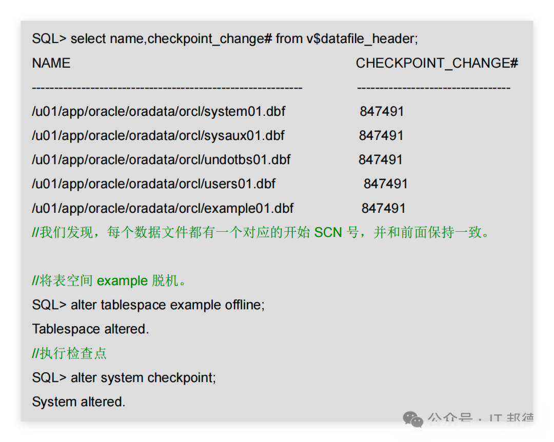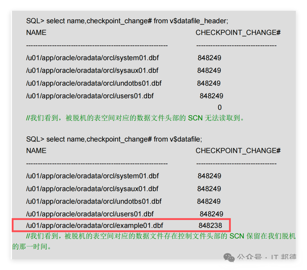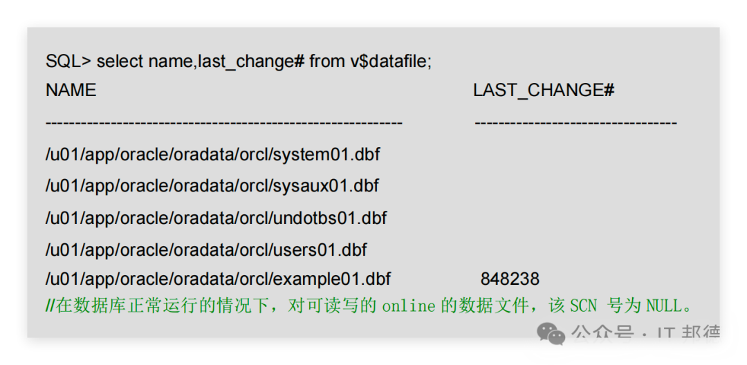 我们发现,每个数据文件都有一个对应的数据文件检查点 SCN 号