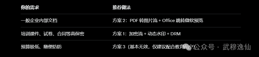 推荐方案 2(性价比最高:强制用微软 Office Online / 只给图片流)
