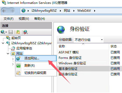 • 选中站点 → 双击 “身份验证” → 启用 “基本身份验证” (需输入用户名密码),禁用“匿名身份验证”。