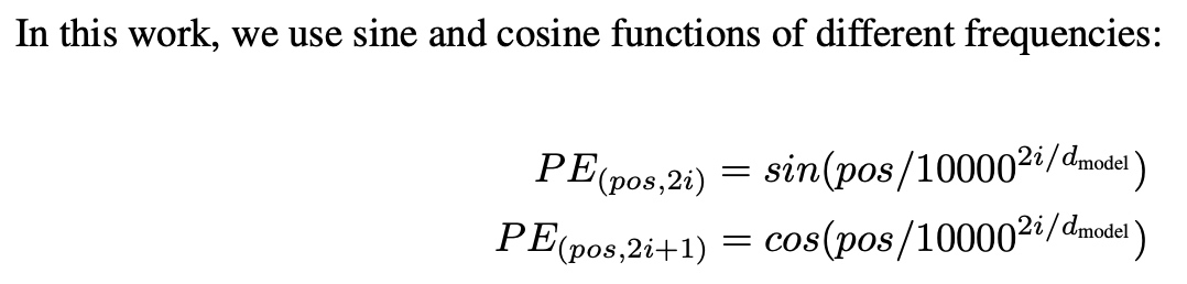 论文使用了 sin + cos 函数计算的位置编码方式,让每个词清楚自己的“位置”。