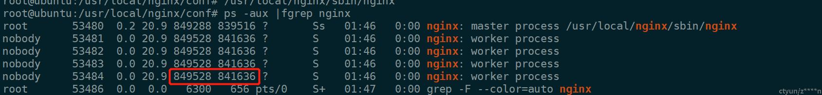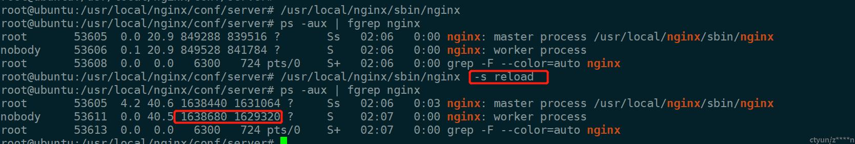 1.每次reload或者启动时worker进程从master进程fork出来,所以reload后worker进程的内存和master进程内存大小应该保持一致。
