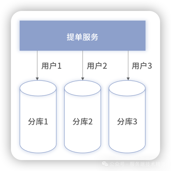 按购买用户划分后,用户的使用场景都可以直接通过分库支持,而不需要通过异构数据(存在数据延迟)等手段解决,对用户来说体验较好。其次,在同一个分库中,便于修改同一用户的多条数据,因此也不存在分布式事务问题。