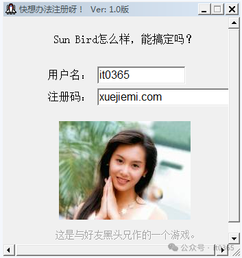 我们在循环外面一条代码下断点F2,在F9跳过它。在次F9运行起来。发现软件真注册成功,大美女也显示出来了