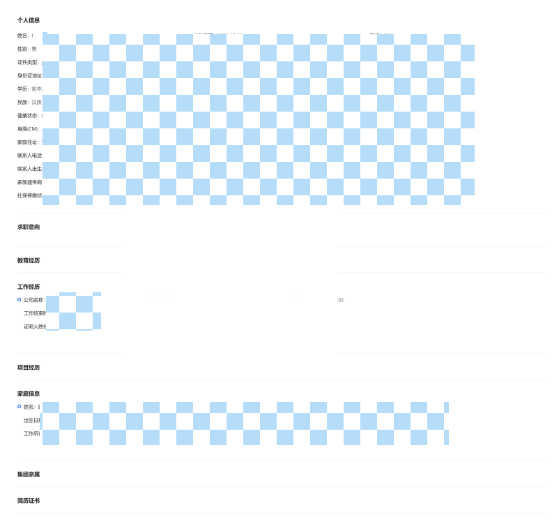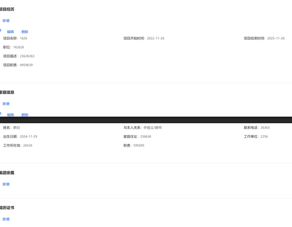 在之前的招聘系统中,有一个信息展示页,其中包含了候选人的详细信息,是通过前端渲染字段来进行展示。信息量比较大,在页面的局部容器中滚动,并且支持编辑、删除等操作。为了便于候选人信息的存档和分享,我们需要实现将这些信息导出为PDF的功能。