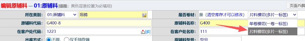 点晴模切ERP材料是片料如何做资料?