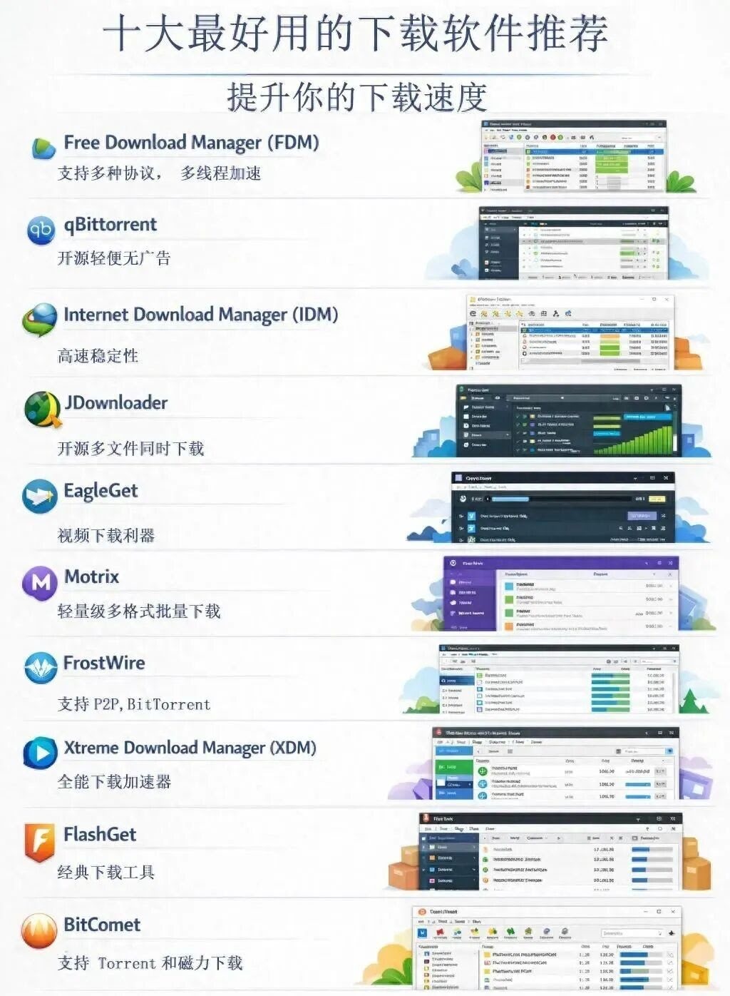 - 简介:轻量级的下载管理工具,支持批量下载,适用于多种格式。
