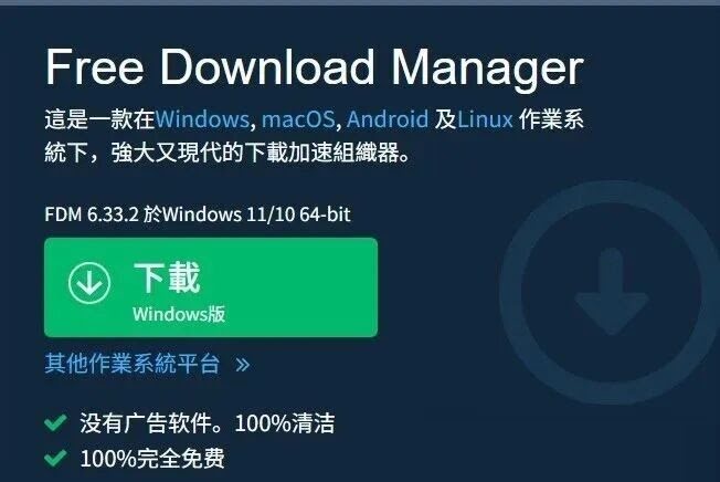 中文官网:https://www.freedownloadmanager.org/zh/英文官网:https://www.freedownloadmanager.org/下载页:https://www.freedownloadmanager.org/download.htm(2)各平台直链(官方源)