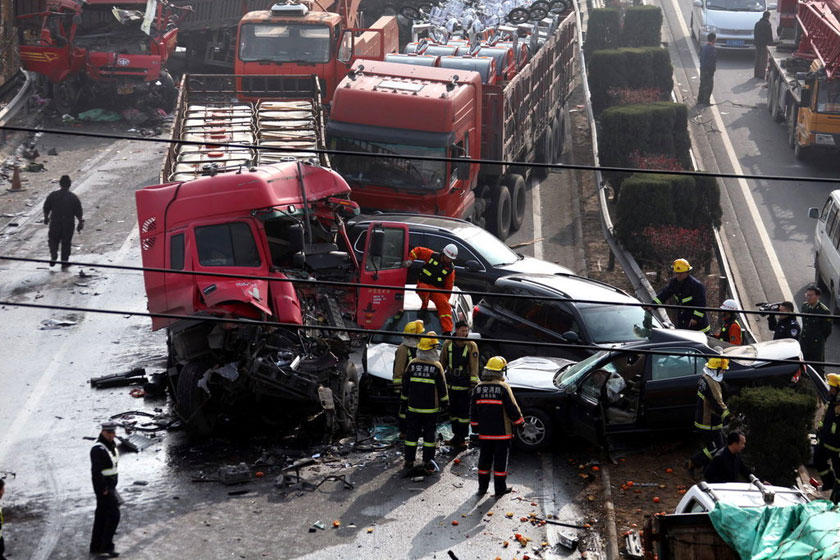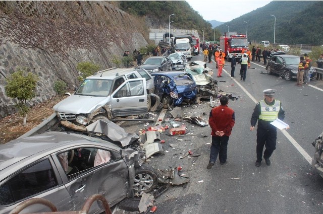 粤赣高速十几台车葬火海,每起车祸都是这样发生的...粤赣高速十几台车葬身火海,每起车祸都是这样发生的,你会拿你家人的生命做试验品吗? 10月6日下午15时许,粤赣高速横市路段十几台车连环相撞全部着火 当自驾游成为一种时尚的时候,告诉车友:保持可控的车速是危险发生时唯一的救命稻草。这是一个高速交警的吐血救命忠告,常跑高速的、所有开车和坐车的同胞都一定要看!!! 一个好朋友正是因为以前看过这个帖子,前天在沈大高速上才避免一起交通事故,救了他一命。他说一定要在网上发出来,让更多的司机朋友看见,走高速的司机朋友在每次上高速前,最好把这篇文章温习一遍。 一、停车、停车、还是停车! 最重要的我要放在最前面说。高速公路行车最怕的是什么?是停车!在高速运动的车流里不管因为什么原因致使道路堵塞而停车,最可怕的事情就可能要发生了。这里我要重点说一下小车,碰到这种情况,小车司机发现前方道路堵塞时,一定要马上看观后镜里有没有大货车跟着你,如果有,一定要提前减速并打开双闪灯提醒后车注意,给后面的大车充足的距离和时间减速,如果后面的大车按喇叭或向你不停的闪灯,相信我,他一定是刹不住车了,你一定一定要加速往紧急停车道内钻!哪怕会刮伤你的爱车。 每年!每年我们都会碰到几起这样的事故:因为堵路,小车停在大车后面等待放行,结果后面的大车撞上来,后面的大车车头都撞上了前面大车的车尾!小车在哪里?!二人、三人、四人、五人!小车上有几人就是几条人命!几毫米厚的小车框架在几十、上百吨重量的冲击下比纸还薄!不要迷信你乘坐的是什么车,不要自认为安全,我见过拉开后压缩的只剩一米长的红旗车,我见过被压成铁皮的面包车,我见过火中被困的人的扭曲的身影和嚎叫,我见过挤得只有二指宽的人的头颅。 你或许会问,后面的大车为什么不停下来?相信我,他不是不想停,他太想把车停下来了!可是你见过核载九吨却拉五十吨的货车吗?你见过核载十九吨却实载九十吨的罐车吗?你见过核载三十吨却实载一百三十吨的巨无霸吗?你看看路上的大货车们,十辆车有九辆半都或多或少的超载,不超就没有盈利,不超就会亏钱!那远不是交警一家就能够解决的问题。碰到情况,尤其是下坡路面,你就是给这些个大半挂车后面拴上一百头牛也拉不停他! 这里暂且不提。还是要劝告所有碰到堵路的小车司机,将车停下后,就算外面在下刀子也要全部离开车辆迅速转移到路外,直到你的车后排上了七八辆以上的大车后再回到你的车上!为什么要等七八辆?2006年我手里曾有一辆车连撞十三辆车的纪录,在我们大队一直没有人能打破,你愿意你是第几辆?实在不行就从紧急停车道往前走,走上二三百米后再找空位腾出停车道,宁愿让交警罚你贰佰元钱,也比命便宜!在这里,还是那句话:紧急停车道是一条生命通道!一条你的逃生通道! 二、爆胎时的操控处理 提到车辆爆胎,在高速行驶时小车爆胎尤其是前轮爆胎造成的后果远比大车爆胎严重,爆胎虽然不可预料,但在我们的事故处理中常常发现一个现象:如果是左前轮爆胎造成车辆失控撞击护栏,撞的往往是右侧护栏,反之亦然。究其原因,在车辆爆胎时因胎径及摩擦系数的不同,车辆的运行轨迹将偏向爆胎的方向,爆左前轮向左偏,爆右前轮向右偏,而司机在打方向纠正时,指向性能反映在已爆胎的车辆上是有一个迟缓性的,加之因爆胎造成的慌乱,常常造成纠正过度,从而人为加剧车辆的失控,致使左前轮爆反而撞上了右边护栏,甚至连续多次撞击左右护栏的现象发生。 正确的做法是在车辆爆胎时,首先要紧握方向,不管车头向哪偏,给一个固定的纠正角度(与你的实际车速有关)并用力保持,同时不要采取紧急制动,因为这时车辆的制动能力在纵线上是不平衡的,让减速行为掌握在受控制的过程中并努力保持原来的行车轨迹,切忌急打方向纠正。 三、超速行驶 超速行驶的危害大家都知道,无论是地方还是高速,都会造成不可挽回的后果。如果你驾驶一辆时速100KM的小车,假设你身高170CM,从你眼睛发现情况,到大脑做出判断,再反映在刹车制动,生理上的反应时间是1.7S左右,而这时你的车辆已经前行了47.2M。40米的距离! 会包含多少无可奈何的生命!我们曾经在限速70KM/H的路段查超速,有辆小车竟然跑203KM/H,看着照片,我们都说这个驾驶员迟早要报销,那是他的命,命在他的手中,别人无能为力。对于超速行为,我只有两句话:一句是“十祸九快”,一句是不要迷信“好车”,往往有些人迷信自己的车好,性能就好,但是生命面前是人人平等的,我们手里有宝马 745,有保时捷卡宴,还有S80,不管日本车欧洲车,只要超速出事,该死死该伤伤,一点不耽误。 我国最高等级的高速公路限高速是120KM/H,这是写在安全法里的法定最高时速,这不是没有根据的,据国外资料,如果一辆时速超过160KM的小车发生爆胎事故,不管你是否系安全带,司乘人员的死亡率是 100%!记住,不是50%,也不是99%,是100%!敬告那些喜欢一上高速就把油门踩到底的司机朋友,祈祷你的轮胎安然无恙罢。 四、行车前的安全检查 还是爆胎问题引出的题目,这是一个很偶然的因素,你说你是新车?我们手里有5000公里不到的新车爆胎,至于车型我不方便在这里说,但可以透露是某公司十万元左右最普通的家用车。除了出行前检查轮胎,还有机油问题、润滑油问题、降温