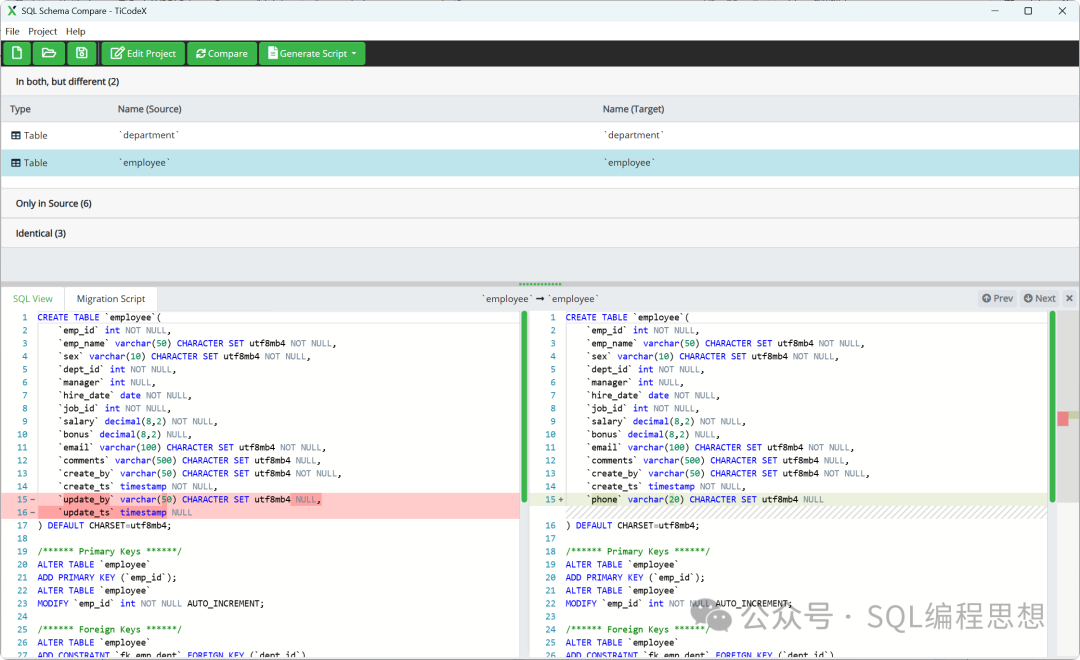 SQL Schema Compare:一款免费开源的数据库结构比较和同步工具