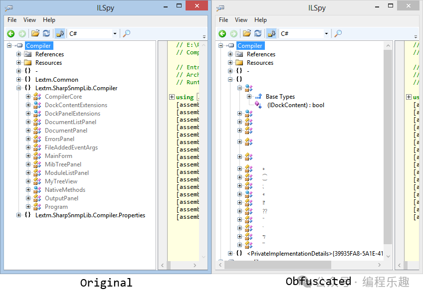 | 推荐一个针对.NET程序集混淆开源工具,为.NET应用程序提供基础的代码保护功能。01项目简介Obfuscar是一个开源的.NET程序集混淆工具,旨在为.NET应用程序提供基础的代码保护功能。该项目采用MIT许可证发布,意味着它是完全免费且可自由使用、修改和分发的。该项目使用C#开发,提供了基本但实用的代码混淆功能,适...   |