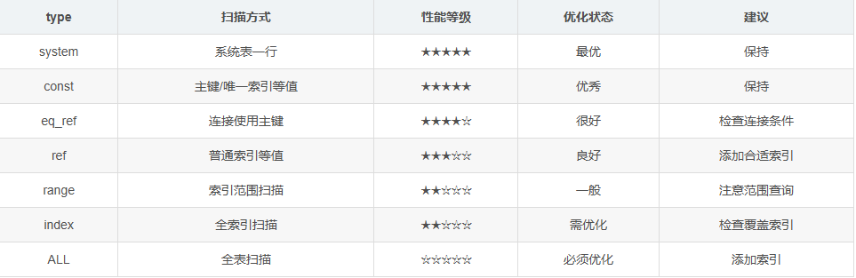 掌握MySQL的EXPLAIN命令是数据库性能优化的必备技能,而其中的type字段更是分析查询性能的关键指标。本文将带你深入理解七种type类型的含义、使用场景和优化策略。