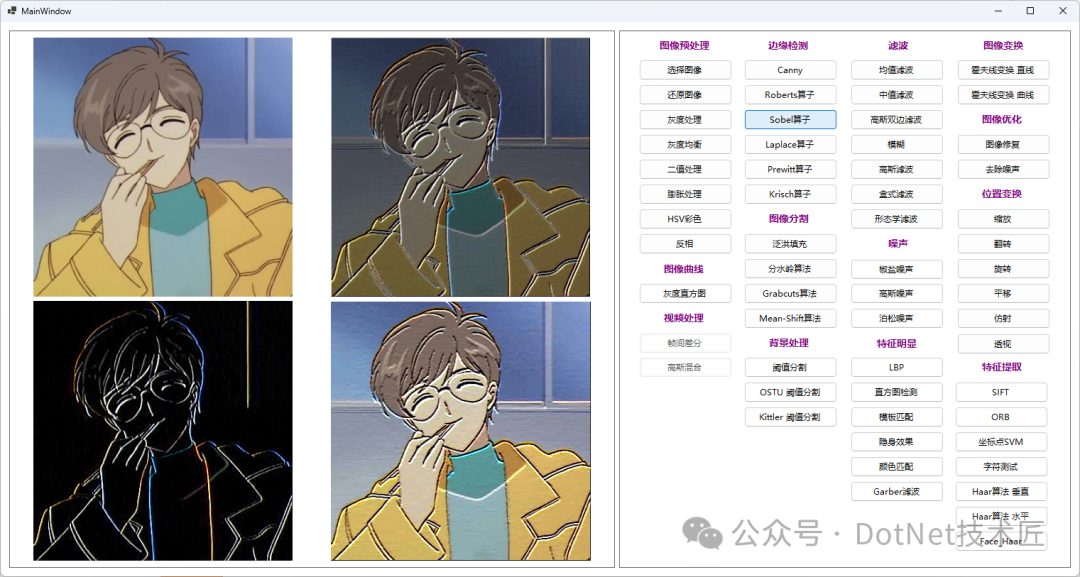 #OpenCV#OpenCvSharp#图像处理、C#、#开源项目#边缘检测#颜色空间转换#特征点检测#WinForm