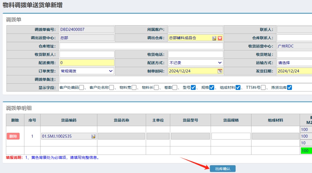 | 点晴模切ERP-调拨出库单-发货操作