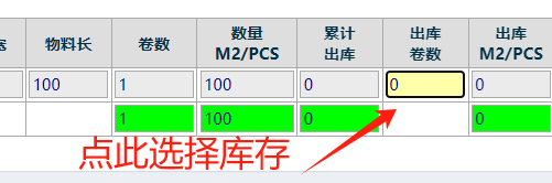 如果是卷料点击卷数,非卷料点击数量,在弹出的窗口选择库存出库 如下图
