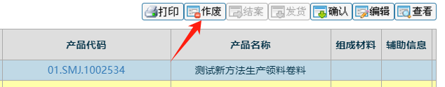 点击一条信息后,背景变色后,点击作废按钮(注意只有未确认的订单才能作废) 如下图: