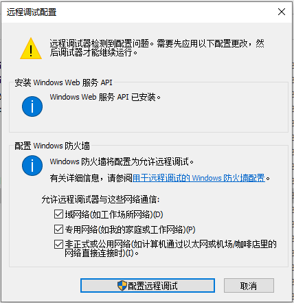 | Visual Studio 在开发服务器上调试远程计算机上的程序