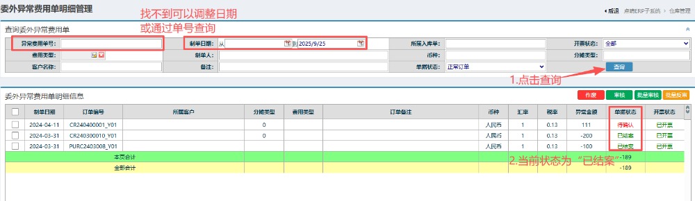 :点晴ERP-委外费用异常单-操作流程![]()