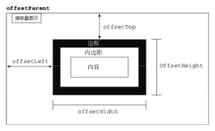 offsetTop,元素的上外边框至包含元素的上内边框之间的像素距离,其他offset属性如下图所示: