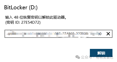 输入恢复密钥,点击解锁。