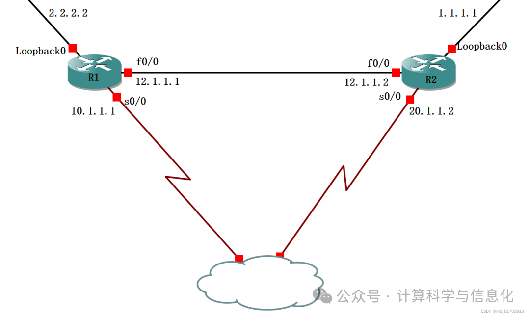 当R1与R2之间的直连接口F0/0中断后,如果双方将数据包从S0/0发出,那么R1的源地址就是10. 1. 1.1, R2的源地址就是20. 1.1.2;