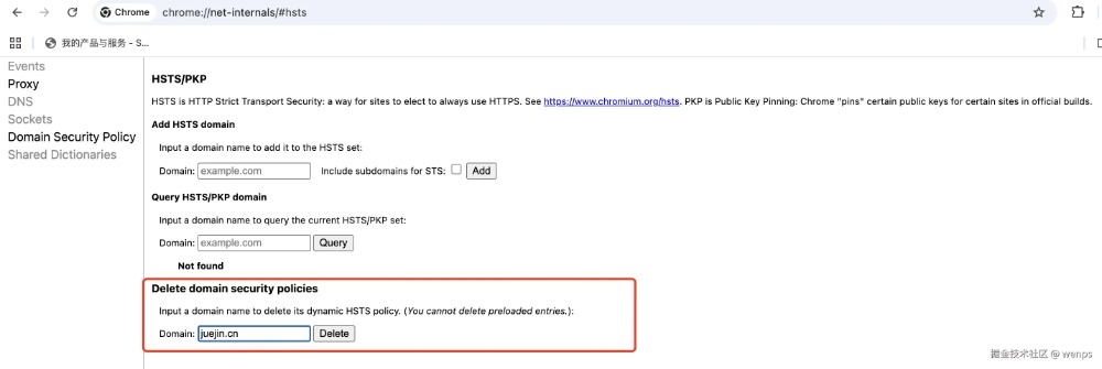 2. 检查 HSTS 缓存 - chrome://net-internals/#hsts